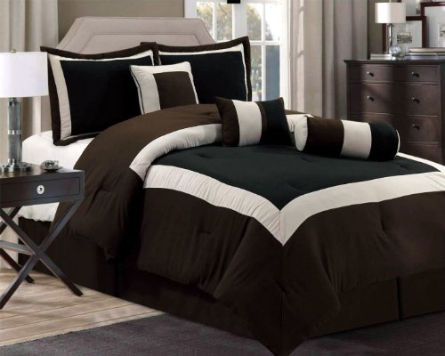 8 Pc Modern Hampton Comforter Set Black / Brown BED in a BAG - King Size Bedding