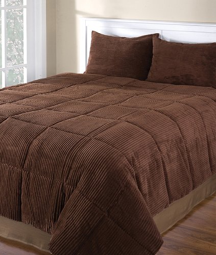 Chocolate Brown Corduroy Full/Queen 3 Piece Comforter Set Feature
