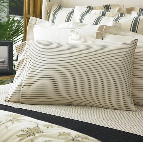 - Two King size Pillowcases in the Ralph Lauren Plage D'Or Champagne and Black stripe fabric.