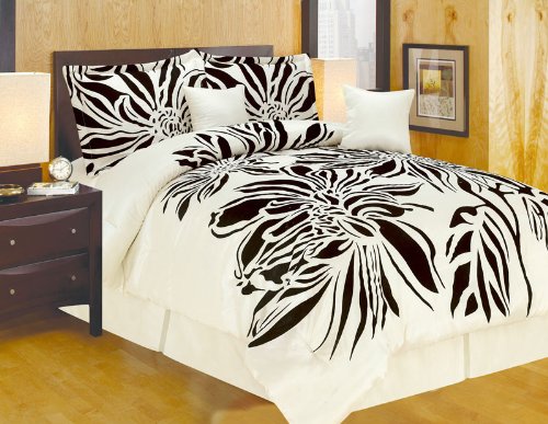 Read more Modern Oversize King (104x94") Beige with Black Flocking Printing Comforter Set Bedding-in-a-bag
