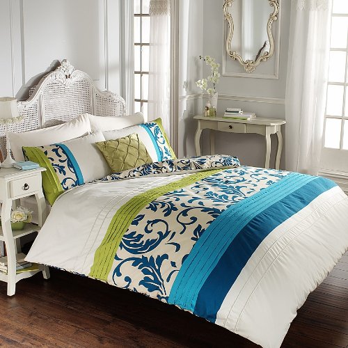 Read more REVERSIBLE FLORAL PLEATED KING DUVET COVER QUILT BEDDING SET SCROLL TEAL GREEN
