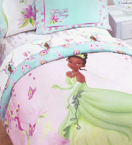 Princess Tiana adorns these sheets in a beautiful pattern your own little princess will love. Transform your little princess' bedroom into a fairy tale come true with this fun twin-size sheet set!