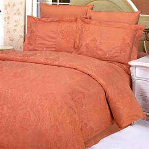 Le Vele Terracotta - Duvet Cover Bed in Bag - Full / Queen Bedding Gift Set - LE23Q This intricately woven cotton jacquard ensemble features beautiful rose patterns on a terracotta backdrop.