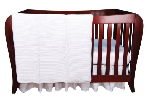 Trend Lab’s White Pique 3 Piece Crib Bedding Set is an elegant classic. Soft white waffle pique is clean, fresh and easily accented with any color of your choice. The soft textures and simplicity make this classic group perfect for any baby boy or girl. Set includes quilt, crib sheet and skirt. The quilt measures 35” x 45” and features white waffle pique on the front with white flannel on the reverse. A white cotton twill trim adds the finishing touch. White jersey crib sheet features 10” deep pockets and fits a standard 52” x 28” crib mattress. Elastic around the entire opening ensures a more secure fit. Ruffled crib skirt with 13.5” drop features white waffle pique. Matching White Pique Crib Bumpers sold separately. Complete your nursery with coordinating accessories by Trend Lab.