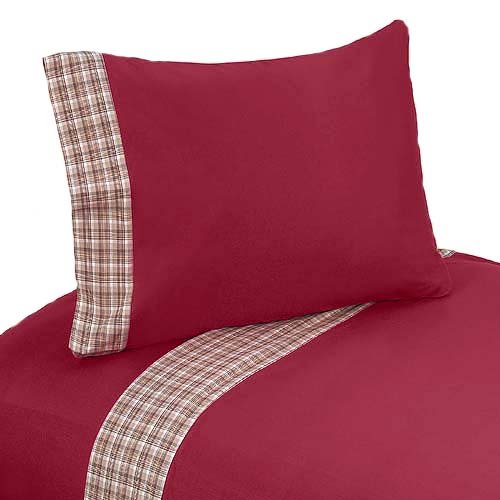 Sweet Jojo Designs Frankie's Firetruck 4pc Queen Sheet set is made to coordinate with their Full/Queen Bedding Sets. These sheets use solid brick red 100% Cotton fabric with plaid trim. High quality and easy machine washing will make this queen sheet set a must have for your room. Includes 1 fitted queen size sheet, 1 flat queen size sheet and 2 standard pillow cases.