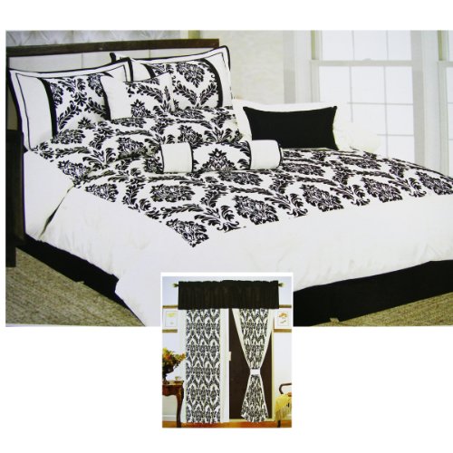 Read more Avalon 7pcs Ensemble Bedding Set - Queen Size Complete Bed Set w/ 2 Window Draps (9cpcs Total)