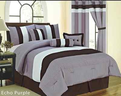 This 7 piece King bedding comforter set with purple,brown,beige patched block gives your bedroom a modern look