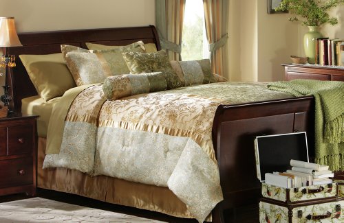 Read more Elegant Bedding Comforter, Sham, Bedskirt Set Green & Gold Multi Full By Collections Etc
