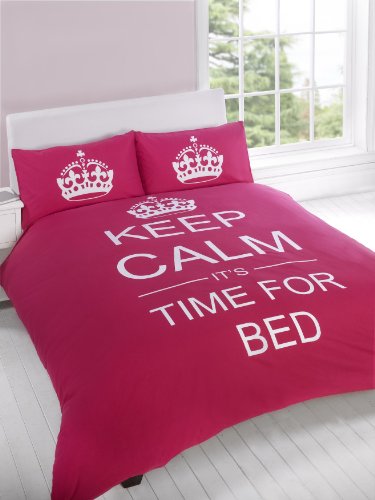 Read more TWIN CERISE PINK TEENAGER KEEP CALM ITS TIME FOR BED COTTON REVERSIBLE COMFORTER COVER