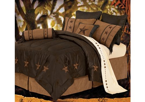 Laredo Chocolate Bedding in Super Queen Size. Laredo star bedding is a cowboy favorite. embroidered stars, fringe, and faux leather make this set shine.