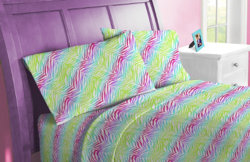 Change the look and feel of the bedroom at a moment's notice with the Awesome Sheet Set. The multicolor zebra print will give your bed a young and vibrant feel. Goes perfect with the Rock Your Room Awesome Comforter. Comes with a Full fitted and flat sheet as well as two standard pillow cases.