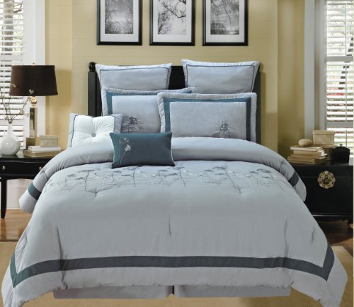 RT Designers Collection Spring Hill 8-Piece Comforter Set, Queen, Silver Feature